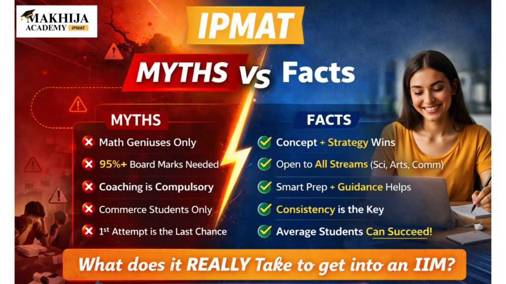 There are countless myths surrounding IPMAT, JIPMAT, and other IPM entrance exams — from the belief that you must have a strong mathematics background to assumptions that only students with 90%+ board scores can qualify. Some students think low mock test scores mean failure, while others believe success depends on studying 12–14 hours a day.